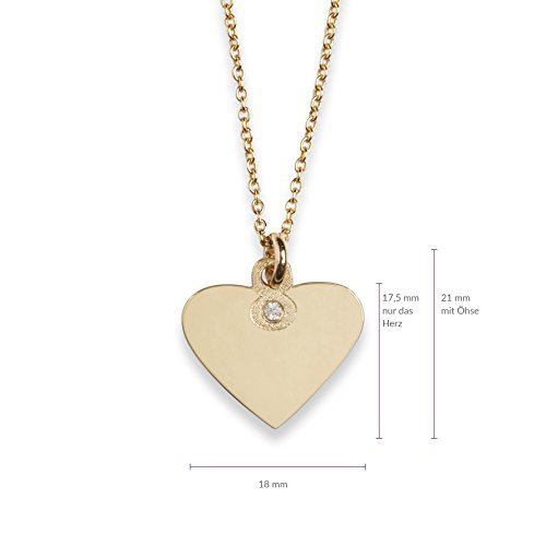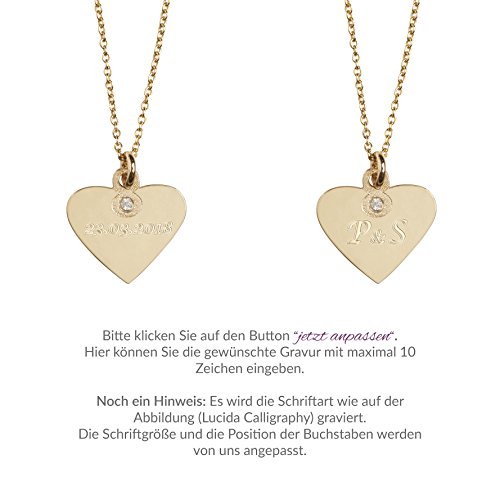 ? Hochwertige und edle Halskette mit einem Herz-Anhänger und einem bereits gravierten Zeichen der Unendlichkeit. 14 Karat Gold mit einem echtem Diamanten. ? Persönliche Gravur nach Wunsch GRATIS! Wir gravieren den Goldanhänger mit einem Namen, einem Datum oder Buchstaben. ? Die goldene Herzkette ist in drei Längen tragbar. 40cm, 42cm oder auf 45cm. ? Die moderne und gleichzeitig schlichte Damen-Kette aus Echtgold ist ein wunderbares Geburtstagsgeschenk, zu Weihnachten, Valentinstag, für die Freundin, Frau, Mutter, Schwester, zum Abschied oder Jahrestag. ? Inklusive Zertifikat und hochwertigen Etui, ideal als Geschenk oder zum Aufbewahren dieser wertvollen Goldkette