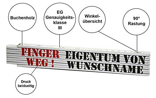 ???? VATERTAGSGESCHENK: Für den Vatertag ist der Meterstab mit dem personalisierten Aufdruck des Namen ein optimales Geschenk. Auch zu anderen Anlässen freut sich jeder Heimwerker über diese kleine Aufmerksamkeit.. ?? BEIDSEITIGER DRUCK: Damit der Heimwerker immer an den schönen Moment des Beschenktwerdens zurückdenken kann, ist der Zollstock auf beiden Seiten mit dem gleichen Motiv bedruckt.. ???? LANGLEBIG & FUNKTIONELL: Der Meterstab ist nicht nur ein nettes Geschenk, er funktioniert auch und leistet seinem neuen Besitzer gute Dienste. Er ist aus Buchenholz mit komfortabler 90° Einrastfunktion.. ?? LIEBE IM DETAIL: Mit Geschenken aus der GESCHENKE-FABRIK zeigen Sie Liebe fürs Detail. Personalisieren Sie alltägliche Gegenstände mit individuellen Gravuren oder Aufdrucken für Ihre Liebsten.. ?? DEUTSCHE QUALITÄT: Alle Produkte der GESCHENKE-FABRIK werden in Deutschland hergestellt. So können wir Ihnen eine hochwertige Qualität garantieren. Kontaktieren Sie uns gerne bei jeglichen Fragen.