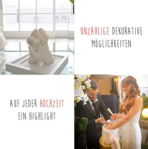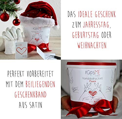 ?? 3D HANDABDRUCKSET FÜR PAARE besondere Erinnerung fürs Leben; optimale GESCHENKE FÜR PAARE, Familie aber auch Geschenk für Freund oder Freundin: Hochzeit, Geburtstag, Familienfeier, Freundschaft, Verlobung, Geschenke für den Jahrestag, Pärchen Geschenke; Gipsabdruck ist EINFACH ZU MACHEN, wunderschöne Art von Paar Geschenke. ?? GIPS HOCHWEIß und ALGINAT Abformmasse bester Qualität MADE IN GERMANY: alles in Deutschland hergestellt, natürlich und ungiftig, PH-neutral und hautverträglich auch für Babys Haut, TAUSENDFACH GETESTET. ?? #GipsME Handabdruck SET BEINHALTET: Eimer zum Anrühren, 450g Alginat Abformmasse, 1500g Gips Hochweiß, Edelstahl Korrektur Piekser, Holzschaber, Schleifpapier, Handschuh, passend rotes Geschenkband aus Satin, genaue Schritt für Schritt Anleitung. ?? Perfekt für 3D Handabdruck von 2 Erwachsenen, 1 Erwachsener + 1 Kind (Kinder ab ca. 4 Jahren, müssen 3-10 Minuten komplett stillhalten können, schlafende Babys), so werden optimale Ergebnisse erzielt, für mehr Hände #GipsME Handabdruck Set Familie. ?? BEEINDRUCKENDES ERGEBNIS, Detailreich bis in die kleinste Hautfalte und Pore, EINFACH zu machen, SCHRITT FÜR SCHRITT ANLEITUNG MUSS DAFÜR GENAU BEFOLGT WERDEN, macht unheimlich VIEL SPAß, ob als Couple Geschenke, Geschenk für Pärchen oder Geschenk für Freund zum Jahrestag