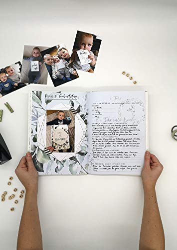 ? ERINNERUNGSSCHATZ - 76 Seiten überzeugen durch ihr stilvolles Design und ihre liebevolle Gestaltung. Sie bieten ausreichend Platz zum Ausfüllen, Selbstgestalten und für die schönsten Fotos und Erinnerungen des ersten Lebensjahres.. ? QUALITÄT - Das Eintragalbum im DIN A4-Format mit stabilem Hardcover-Einband, Fadenbindung und hochwertigem Naturpapier zeichnen dieses Babyfotoalbum aus.. ? GESCHENKIDEE - Ob zur Schwangerschaft, Babyparty oder Geburt des Kindes - das Album eignet sich hervorragend als Geschenk für die werdende Mama und den werdenden Papa.. ? MADE IN GERMANY - Himmel.Herz.Papier ist ein junges deutsches Familienunternehmen. Wir gestalten unsere Produkte selbst und lassen diese regional in Deutschland drucken.. ? 100% GELD-ZURÜCK - Wir von Himmel.Herz.Papier vertrauen in unsere Qualität und möchten Ihnen deshalb einen absolut risikofreien Kauf ermöglichen. Sollten Sie nach 30 Tagen nicht zu 100,0% zufrieden sein, erhalten Sie Ihr Geld zurück!