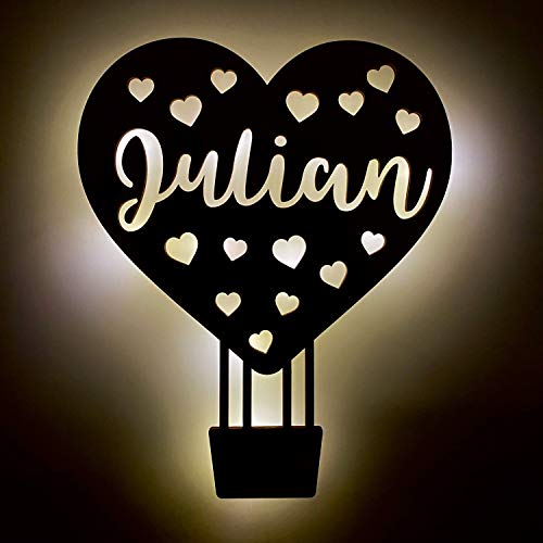 Schlummerlicht Nachtlicht Heißluftballon - personalisiert mit Namen - optional mit Lackierung und/oder Zugschalter