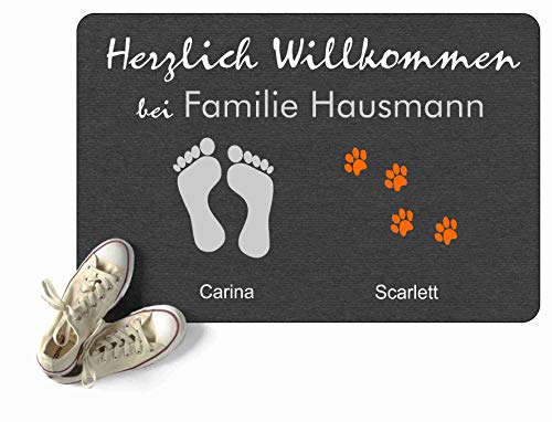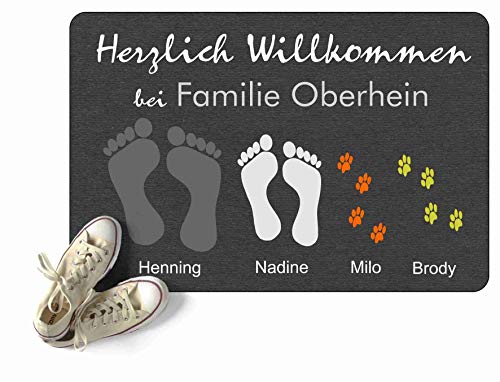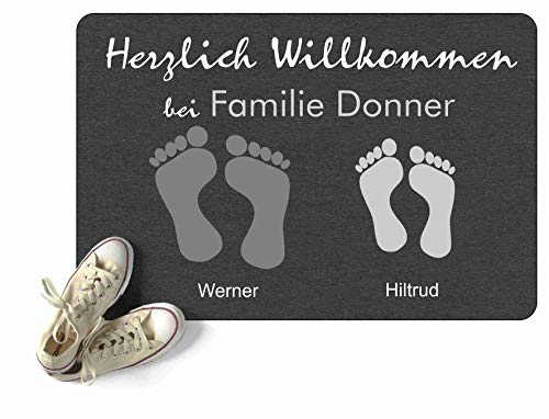 Toller Fußabtreter mit besonderem Design Das kreative Motiv mit Ihrem Wunschtext ist wunderbar als Geschenk für Familien, Paare und Singles geeignet, einfach um Danke zu sagen, als Geschenk zum Ehrentag oder mal als Aufmersamkeit zwischendurch. Natürlich ist es auch ein schönes Geschenk für Sie selbst.. Mit dieser Türmatte fühlen sich Ihre Gäste schon an der Tür herzlich willkommen Es gibt nur eine einzige Chance für einen ersten Eindruck. Mit einem schön gestalteten Eingangsbereich haben Sie den ersten Schritt schon getan.. Hochwertiger Druck tief in der Oberfläche Unsere Schuhabtreter sind mit Ihrem Text und tollen Motiven bedruckt. Das Druckbild ist bei hohen Temperaturen fest und tief mit der Oberfläche verbunden worden. Der Fußabstreifer ist für den alltäglichen Gebrauch als Schmutzmatte für Ihre Haustür, Eingangstür, Garderobe, Zimmertür, Balkontür, Ihr Treppenhaus und ihr Büro geeignet.(Vor direkter Sonne schützen). * Personalisierung: Ihr Wunschtext. * Druck: tief in die Oberfläche eindringend * Größe: 60cm x 40cm (XXL 67cm x 44cm)* Oberflächenmaterial: Filz aus Polyester * Rückseite: rutschhemmendes schwarzes Gummi