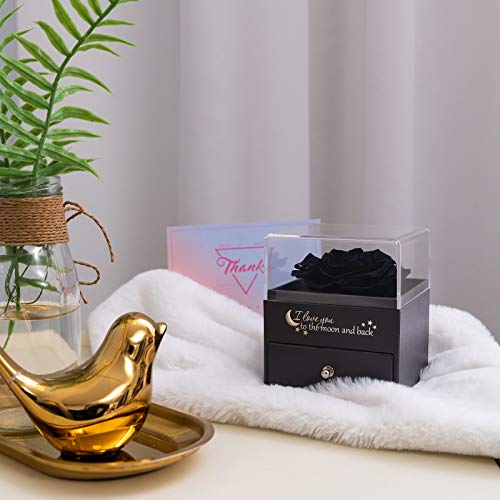 ?Handgemachte echte Blumenrose? Forever Rose besteht aus 100% echter, frischer Rose mit einem Durchmesser von mindestens 30 Blütenblättern.. ?Jewel Case?:"I Love You to The Moon and Back"ist der Text auf der Schachtel. Sie können Ihre Liebe zu Ihrer Familie, Liebe und Freunden ausdrücken. Es gibt eine kleine Schublade mit I Love You Necklace in 100 Sprachen.. ?Lange Lebensdauer? Die konservierte Rose kann 3-5 Jahre aufbewahrt werden, ohne dass sie gewässert oder gepflegt werden muss. Sie müssen jedoch direkte Sonneneinstrahlung, Gerüche, hohe Temperaturen und staubige Umgebungen vermeiden.. ?Romantisches Geschenk für Sie? Die konservierte Rose ist ein Symbol für die ewige, wahre Liebe, Wertschätzung und Fürsorge. Sie ist die perfekte Geschenkidee für Sie wie Freundin, Frau, Mutter, Oma und Ihre Lieben als Valentinstagsgeschenk, Muttertagsgeschenk, Weihnachtsgeschenk, Erntedankgeschenk , Jahrestagsgeschenke für sie, bestes Geschenk für Frau, Geburtstagsgeschenke für sie oder Urlaubspartygeschenk für Mädchen.. ?Paket u. Garantie? Rosen-Kasten + Halskettenkasten ?Mit ich liebe dich Halskette 100 Sprachen?. Kann (er, sie) mehr Überraschungen geben. Bei Problemen können Sie sich gerne an uns wenden!