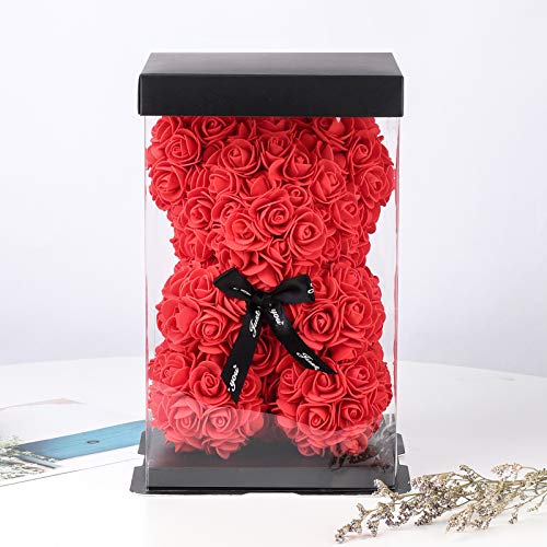 HelaCueil Rose Bär im transparenten Geschenkbox - Valentinstag-Muttertags (Rot, 25CM /10 Zoll)