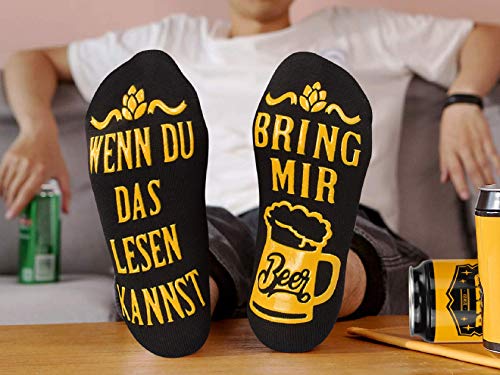 ?????Bier Geschenk für Männer? Bier Geschenk oder zur Grill-Party, das perfekte Geburtstagsgeschenk, Einweihungsgeschenk, Gastgebergeschenk, Partygeschenk oder eine lustige Geschenkidee für Bierliebhaber. Der hohe Anteil an natürlicher Baumwolle lässt die Füße atmen und verspricht einen hohen Tragekomfort. Die Socken sind in einer speziell entwickelten Bierdose verpackt.. ???? ?Einheitsgröße und rutschfestes Design? Lustige Socken für die meisten Männer und Frauen mit Schuhgrößen von 36 bis 44. Machen Sie sich keine Sorgen, wenn Sie die Schuhgröße nicht kennen. Die Socken sind extra dehnbar. Der Slogan auf der Sohle sorgt für eine rutschfeste Bewegung.. ???? ?Einzigartiges Design Bier-Socken? Die Unterseite der Socke ist mit "WENN DU DAS LESEN KANNST BRING MIR BEER" und Bierbecher, sehr einzigartig und witzig. Überraschen Sie und erregen Sie für diesen speziellen Bierliebhaber in Ihrem Leben mit diesem einzigartigen Geschenk.. ??Einzigartiges Geschenk Und Witzige Geschenkidee Zu Vielen AnläSsen? Vatertag, Einweihungspartys, Jubiläum, als 18. 20. 30. 40. 50. 60. Geburtstagsgeschenk für Freund, Opa, Papa, Bruder, Kollegen.. ?????Bequeme Söckchen?Nicht nur ein romantisches Geschenk, sondern auch sehr bequeme Socken, sehr weiche Baumwollsocken halten die Füße warm, eignen sich für kalte Tage und sind angenehm zu tragen.