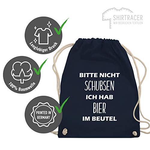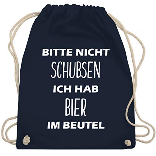 Shirtracer Festival Turnbeutel - Bitte nicht schubsen ich hab Bier im Beutel - Unisize - Navy Blau - rucksack sprüche - WM110 - Turnbeutel und Stoffbeutel aus Baumwolle