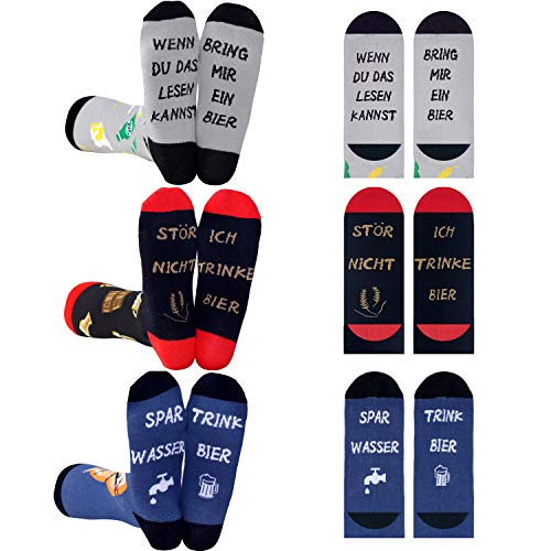 Premium-Qualität: Die lustige socken aus hochwertiger baumwolle, atmungsaktiv und schweißableitend, weich und bequem, lohnenswert zu kaufen.. Herren Socken: Größe EU 43-46. Gute Elastizität, die perfekt zu Ihren Füßen passt. Kommen Sie mit 3 verschiedenen Paar Biersocken, die Ihre unterschiedlichen Bedürfnisse erfüllen können.. Bier socken: Jedes Paar Socken hat unterschiedliche Farben mit unterschiedlichen Bierelementen. Am unteren Rand der Socken befindet sich ein interessanter Text. Zeit, diese lustigen Socken zu kaufen, die jeden Moment aufhellen können, sie sind stylisch, ein Muss!. Geschenke für Männer: Bier geschenke für Ihren Vater, Sohn, Partner, besten Freund als Geburtstagsgeschenk, Weihnachtsgeschenk, Neujahrsgeschenk oder besonderes Geschenk.. Anlässe: Lässig, zu Hause, Arbeit, Schule, Date, Party. Geeignet für Aktivitäten im Innen- und Außenbereich.