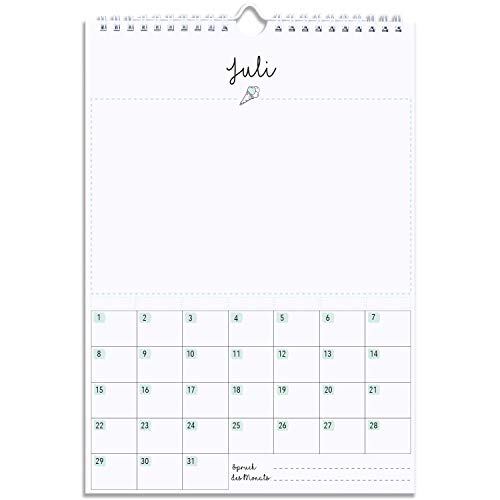 KREATIV: Bastel an deinem Kalender so lange, bis er dir gefällt, du bestimmst das Design, lass deiner Kreativität freien Lauf. PERFEKTES GESCHENK: Verschenke an deine Liebsten einen Kalender, der jeden Monat persönliche Bilder, Postkarten, Sprüche oder Gutscheine enhält. QUALITATIV: Hochwertiger Wandkalender mit Spiralbindung mit herausragender Druckqualität. MERKMALE: 21 x 29,7 cm (A4) und besteht aus 160 g/qm Recycling Offset in weiß, FSC zertifiziert und mit dem Blauen Umweltengel ausgezeichnet, bestehend aus 100% Altpapier.. MARKENWARE: CUPCAKES AND KISSES wurde 2015 gegründet und begeistert bereits jetzt in den sozialen Netzwerken mehr als 80.000 Fans. Wir lieben Papier.