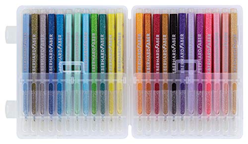 Eberhard Faber 551024 Glitzer Fasermaler in Einer aufklappbaren Geschenkbox, 24 Stück, Leuchtend, Brillante Farben, ca. 3 mm Strichstärke, zum Zeichnen, Kolorieren, Basteln und Schreiben
