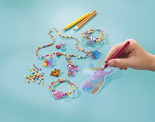 Totum Creativity Bastel-Set: Bastel Deinen Einhornschmuck mit Schrumpffolie, Stiften, Bändern und bunten Perlen