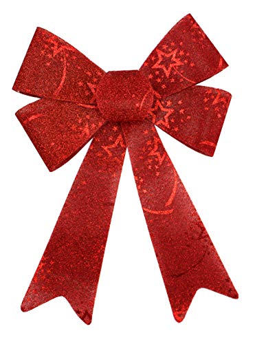 wunderschöne, robuste Deko-Schleifen aus Kunst-Stoff mit kleinen Drähten zum befestigen auf der Rückseite - durch das wetterfeste Material nicht nur im Innenbereich sondern auch draußen einsetzbar - sie sind hochwertig verarbeitet und sehen edel aus. perfekt als Christbaumschmuck oder Fensterdeko geeignet. Aber natürlich auch für do it yourself Geschenke und Gutscheine - nicht nur für Weihnachten oder die Advents-Zeit ein Blickfang in Ihrer heimischen Dekoration - vielseitig einsetzbar. erhältlich in drei Farben (Weiß glänzend reflektierend --- Rot mit Glitzer und Stern-Muster --- Silber-Weiß mit Glitter-Fransen) und in zwei Größen - immer 4 Stück im Set enthalten - Sie können also 4, 8 oder 16 Stück bestellen. Maße: ca. klein: 10cm x 13cm --- groß: 13cm x 17cm. Lieferumfang: Glitzer Schleife 10 x 13cm - 16 Stück Rot mit Glitzer und Stern-Muster