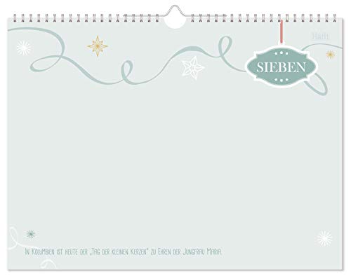 MIT LIEBE SELBST GESTALTEN ? Kleben, Schneiden, Basteln, Malen: Unser Kalender ist das perfekte Vorweihnachsgeschenk zum Selbermachen!. GOLDIGE DETAILS ? Ausfüllfelder für liebe Wünsche und Gedanken, Hinweise auf Weihnachtsbräuchen aus aller Welt und viele abwechslungsreiche Vorlagen, die so richtig Lust aufs Basteln machen. VERSCHENKEN ODER BEHALTEN ? Oder beides? Für den eigenen Haushalt als Geschenk für Kinder, Partner oder Großeltern, als Geschenk für Freunde oder Bekannte - über einen selbst gebastelten Adventskalender mit Fotos & Co. freut sich jeder. NACHHALIG & KLIMANEUTRAL ? Der Umwelt zuliebe ist das Papier für unseren Do-It-Yourself-Wandkalender aus verantwortungsvollen Quellen nachhaltiger Waldwirtschaft, FSC®-zertifiziert und klimaneutral gedruckt.. MIT ALLEN STIFTEN BESCHREIBBAR ? Das Papier hat ein Gewicht von 170 g/m² und ist mit allen Stiftarten optimal beschreibbar - von Bleistift bis Edding. Die genauen Maße sind: 29,7 x 22,5 cm