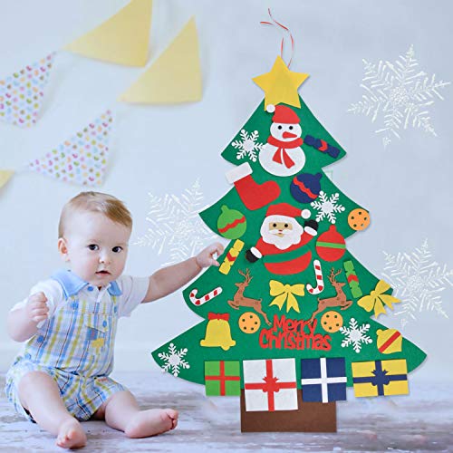 Einzigartiger Filz Weihnachtsbaum: Filz Weihnachtsbaum trifft auf unterhaltsame Aktivitäten von Kindern, um an Weihnachten tagsüber Ornamente an einem beliebigen Baum frei zu kleben. Perfektes Geschenk für Kinder: DIY Filz Weihnachtsbaum ist ein bastelbaum mit dem kinder ihren einzigen weihnachtsbaum gestalten können. Sie stimuliert nicht nur den intellektuellen spaß der kinder, sondern trägt auch zu den weihnachtsideen der kinder bei, bringt den weihnachtsgeist und die gestaltungsfähigkeit ihrer kinder zum ausdruck weihnachtsbäume. Toll Qualität: DIY weihnachtsbaum ist aus hochwertigem filzstoff gefertigt, nicht schädlich für kinder und keine schlechten gerüche, wird das perfekte weihnachtsgeschenk sein, neujahrsgeschenk für Ihr kleinkind, kinder zu weihnachten. Dies ist eine großartige gelegenheit, ihre familie mitzubringen zusammen ohne die mühe und verwirrung, einen echten baum zu schmücken!. Klassisches Design: klassisches baum design, perfekte geschenk für kinder spielen. Ein Loch in der oberseite des weihnachtsbaums, können Sie das spielzeug an der wand oder an einem anderen ort hängen den Sie mit Nagel oder Kleber dekorieren möchten. Package Enthalten: 1 Packung filz kinder weihnachtsbaum (100cm×77cm) mit 30 ornamente, perfekte ergänzung zum urlaub und ein dekorativer abschluss ihres hauses um die weihnachtszeit