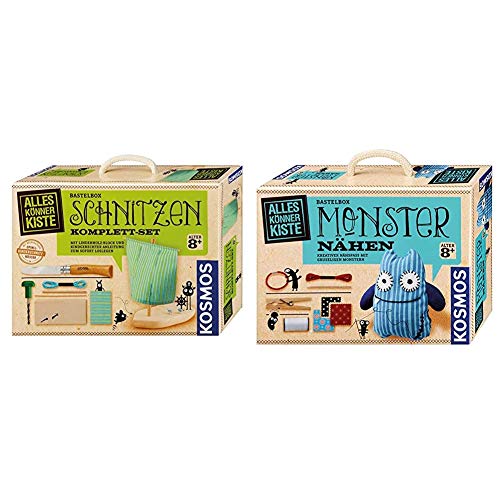 Produkt 1: SCHRITT FÜR SCHRITT SICHER UND EINFACH SCHNITZEN LERNEN - Einfach, verständlich, sicher und mit Material für erste Projekte ausgestattet. Produkt 1: MIT ORIGINAL OPINEL KINDERMESSER - Im Set enthalten ist ein Opinel Messer mit abgerundeter Klinge für größtmögliche Sicherheit. Auch für Linkshänder geeignet. Produkt 1: AUSFÜHRLICHE ILLUSTRIERTE ANLEITUNG - Schritt für Schritt wird das Schnitzen eines kleinen Boots und weitere Schnitz-Techniken sowie Hölzer erklärt. Produkt 1: HOCHWERTIGER INHALT - Schnitzmesser, Block aus Lindenholz, weiteres Bastel-Zubehör und ein Schnitzkurs für ein kleines Boot mit zahlreichen Anregungen. Produkt 2: DO IT YOURSELF: Lieblings-Monster nähen – dank der AllesKönnerKiste von Kosmos sind der Kreativität keine Grenzen gesetzt. Ein ideales Nähset für Anfänger. Produkt 2: HOCHWERTIGES MATERIAL: Mit vielen Stoffen und Bastelmaterial individuelle Monsterfreunde kreieren – zum Spielen, Liebhaben oder Verschenken. Produkt 2: AUSFÜHRLICHE SCHRITT-FÜR-SCHRITT ANLEITUNG: Das liebevoll gestaltete Anleitungsheft ist komplett illustriert und führt Sie und Ihr Kind anschaulich durch das Bastel-Projekt. Produkt 2: FÜR EINSTEIGER GEEIGNET: Die Grundtechniken des Nähens werden genau und leicht verständlich erklärt – so erleben auch Anfänger wunderbare Bastel-Erfolge