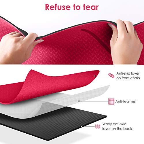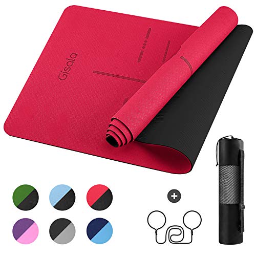 ?Sicherheit & Auswahlvielfalt?Unsere SGS EU-zertifizierten Yogamatten bestehen zu 100% aus recycelbarem TPE und hypoallergenen Materialien. Es stehen verschiedene zweifarbige Kombinationen zur Auswahl, schön und praktisch, die den Bedürfnissen der meisten Menschen gerecht werden.. ?Bequem & flexibel?Die Dicke von 6 mm eignet sich für Anfänger und erfahrene Benutzer. Die GISALA Yogamatte ist so konzipiert, dass sie wie eine bequeme Matratze wirkt und gleichzeitig mit guter Flexibilität ist. Auf diese Weise werden Knie und Ellbogen langfristig geschont.. ?Rutschfest & schweißfest?Rutschfeste Unterlage mit Saugnapf-Bodenstruktur, besser für den Boden geeignet. Dank der einzigartigen schweißfesten Oberfläche ist die Yogamatte extrem rutschfest. Tatsächlich wird der Griff der Yogamatte größer, wenn zusätzliche Feuchtigkeit vorhanden ist!. ?Pflegeleicht & antibakteriell?Unsere antibakterielle Matte ist geruchsneutral und sehr leicht zu reinigen. Sie lassen sich mit einer weichen Bürste und Wasser problemlos abwaschen.. ?Tragbar & praktisch? Unsere Trainingsmatte wiegt nur 0,96 Kg. Es ist ideal für die meisten Arten von Yoga, Aerobic, Pilates, Gymnastik, Bodybuilding usw. Eine tragbare Tasche für den einfachen Transport wird gebietet.