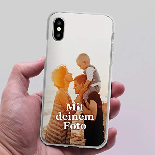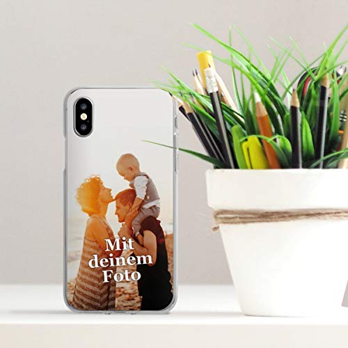 Apple iPhone X Hülle selbst gestalten: Dank der flexiblen und hochwertigen Handyhülle bleibt das Gerät vor sämtlichen Gefahren des Alltags geschützt.. Passgenauer Sturzschutz: Durch die Display und Kantenumrandung wird bei einem Sturz der direkte Aufprall verhindert und das Display ist geschützt.. Dein persönliches Unikat: Gestalte jetzt deine eigene Hülle, der Print ist ebenso hochwertig wie die transparente Apple iPhone X Schutzhülle selbst.. Allzeit einsatzbereit: Durch die passgenauen Aussparungen sind alle wichtigen Bedienelemente jederzeit frei erreichbar.. Rutschfestes Case: Das Apple iPhone X Case zum selbst gestalten liegt gut in der Hand und ist durch die griffige Oberfläche besonders rutschfest.