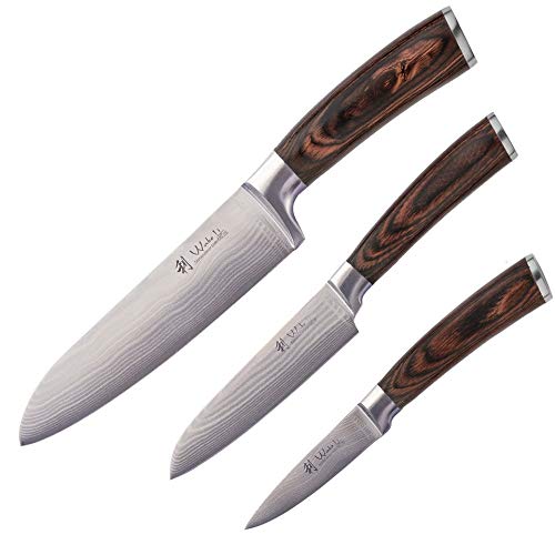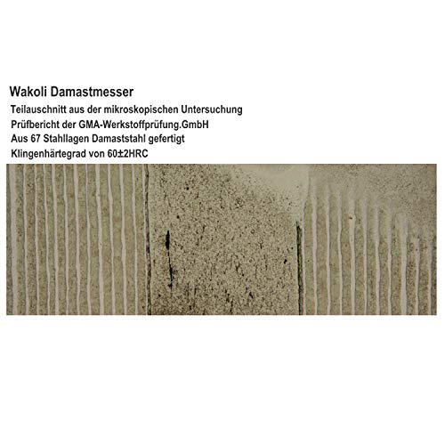 HÖCHSTE QUALITÄT: extra scharfe Profimesser mit Japanischen Damaszener-Klingen und Pakkaholz-Griffen braun, Klingehärtegrad: 60±2HRC, aus 67 Stahllagen gefertigt, jede Klinge bietet mit hochlegiertem, eisgehärtetem Kohlenstoffstahl optimale Schärfe. 3 RASIERMESSERSCHARFE MESSER IM SET: Messer-/Klingenlänge Santokumesser 30,50 / 17,00 cm, kleines Santokumesser 23,50 / 12,00 cm, Officemesser 19,50 / 8,50 cm. PERFEKT ALS GESCHENK: für sich oder Freunde, die Kochen lieben und mit HERZ und LEIDENSCHAFT aus diversen Zutaten wie Gemüse, Obst, Fisch oder Fleisch mit Leichtigkeit ein besonderes Gericht zaubern.. BESTENS AUSBALANCIERT: und mit ergonomisch geformten Griffen aus Pakkaholz gefertigt. Eine Komplettierung für Profikoch / Profiköchin und Hobby Koch / Köchin. Mit EDLER HOLZBOX zur sicheren Aufbewahrung des Messersets, gesichertes Verstauen und perfekt abgerundete Optik aus der Wakoli Edib Serie. Professional kitchen knife