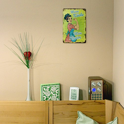 ? Wand-Deko Retro Wandschild mit Küchen Spruch. Küche Werbeschild magnetisches Reklameschild für Küche, Wand, Tür, Zimmer, Eingang.. ? Retro Türschild für: Küche, Backstube, Bar, Herd, Theke, Garten. Alternative zu Poster, Plakat, Wandtattoo, Bild.. ? Hochwertiges Wandbild meine Küche, Frauen Aluschild als Dekoration, Zubehör, Accessoire, Überraschung, Geschenk für Muttertag, Geburtstag.. ? Lustige Küchen Sprüche Werbeschild Meine Küche Mein Revier. Deko Wandbild bedruckt grün, blau.. ? Vintage Küchen-Blech-Schild 20x30 cm mit Retro Motiv Schildersprüche und umgeschlagener Kante. Montage durch vorgeborte Löcher.