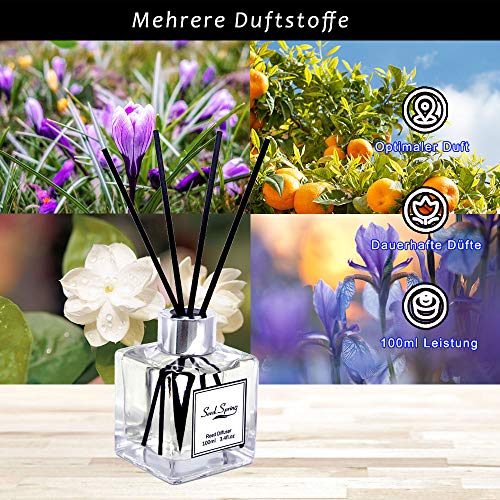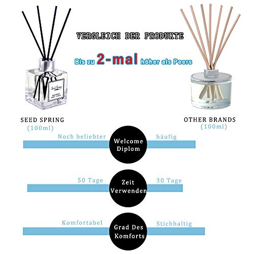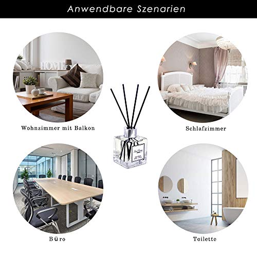 ?Reichhaltige Düfte?- Ein verführerischer englischer Garten aus duftenden Veilchen, vereint mit sanfter Orangennote und einem Hauch von Lavendel beduftet und verleiht jedem Raum eine erfrischende Atmosphäre.. ?Intensiver Duft?- Der Gehalt an Duftöl wurde um 30% erhöht, um die Luft effektiv zu beduften, und füllt den Raum mühelos mit einem wunderbaren und natürlichen Duft.. ?Ästhetisch & verschenkbar?- Dank klassischer Glasflasche ist der Raumduft perfekt als Innendekoration überall im Haus. Die hübsche Verpackung macht den Diffuser zum perfekten Geschenk für alle Anlässe, wie Einweihungsparty, Geburtstag, Valentinstag und Jubiläum.. ?Einfaches Anpassen der Duftintensität?- Wird mit 8 Rattanstäbchen in Schwarz geliefert, damit Sie die Intensität nach Wunsch einstellen können, indem Sie Duftstäbchen hinzufügen/entfernen, damit der Duft nicht zu überwältigend oder zu leicht ist.. ?Mit Vertrauen kaufen?- Wir streben danach, den besten Rattanstäbchen-Diffusor und den besten Kundenservice zu bieten. Falls Sie nicht zufrieden sein sollten, kontaktieren Sie uns bitte. Wir erstatten den Kaufpreis oder senden Ihnen Ersatz.
