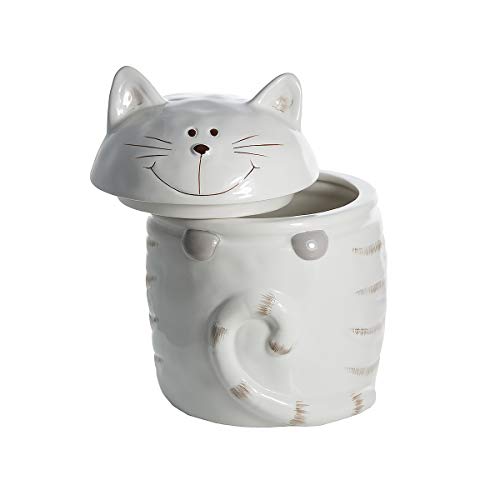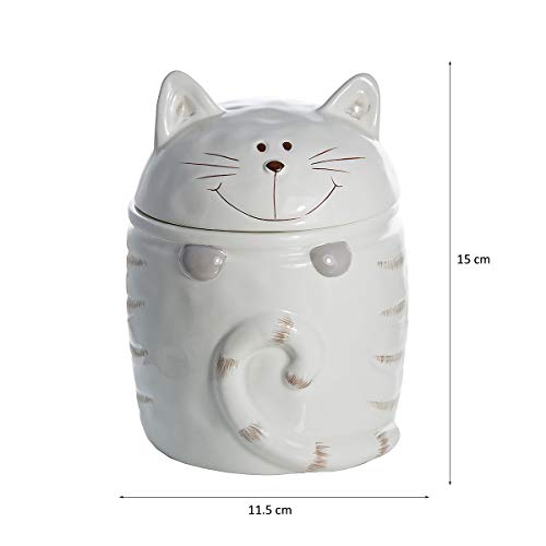 Sehr niedliches Katzenkeramiksgefäß, ideal für Tee, Kaffee, Zucker - auch für die Aufbewahrung von anderen Lebensmitteln oder anderes geeignet. Dieses charmante Katzengefäß ist aus 100%igem Dolomitenkeramik mit handverzierten Designs und spülmaschinenfest. Maße: 15 cm hoch und 12 cm breit, das süße Gefäß in weiß passt super in die Küche oder Badezimmer und ist das ideale Geschenk für Katzenbesitzer und -liebhaber. Maße: H 15 cm x L 12 cm x T 12 cm Der Artikel ist auch in beige-nerzbraun oder als 2er-Set mit je einer Farbe erhältlich. Der Artikel kommt in einer Box verpackt. Nur eines von vielen qualitativen, einzigartigen Katzenartikel von Spotted Dog Gift Company