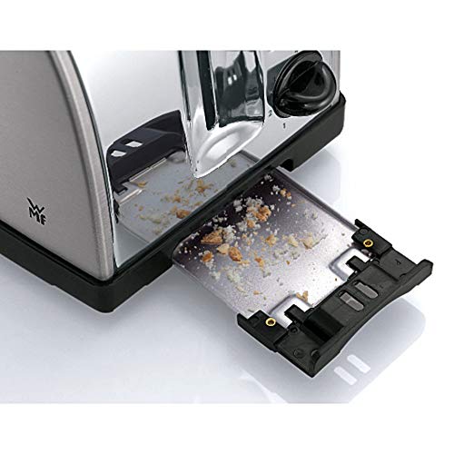 Inhalt: 1x Toaster aus Cromargan Edelstahl matt (30x 16,5x 19,5 cm, 900 W, Kabellänge 1m) mit Brötchenaufsatz zum Aufbacken von Brötchen und Croissants - Artikelnummer: 0414010012. Doppelschlitz-Toaster: Geeignet für 2 Brotscheiben, Toastscheiben (bis zu einer Größe von 9x9 cm), Hefezopf und ähnliche Backwaren mit einer maximalen Dicke von 2,6 cm. 7 variabel einstellbare Bräunungsstufen. Überhitzungsschutz bricht Toastvorgang bei zu hoher Temperatur ab. Extra Lift-Funktion für sicheres Entnehmen von kleineren Brotscheiben. Integrierte Brotzentrierung für gleichmäßige Bräunung. Leichte Reinigung durch herausnehmbare Krümelschublade. Kabelaufwicklung am Boden. Bagel-Funktion zum einseitigen, energiesparenden Toasten, Auftau-Funktion für gefrorenes Brot, Nachtoast-/ Aufknusper-Funktion für bereits erkalteten Toast, Stopp-Taste