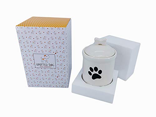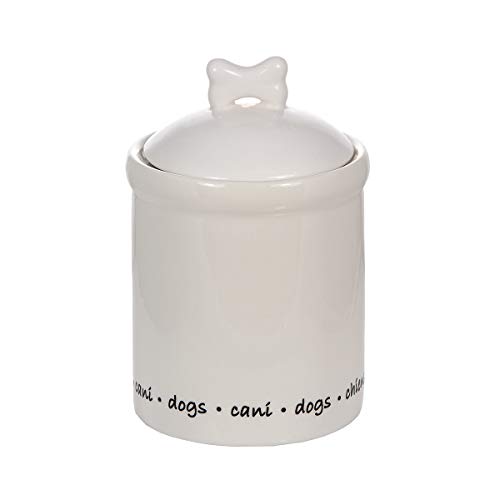 Keramik-Vorratsdose mit Hundemotiv mit luftdichtem Deckel und einfach zu fassendem Griff in Knochenform. Geeignet für die Küchen Aufbewahrung von Tee, Kaffee, Zucker, Süßigkeiten und anderen Lebensmitteln. Diese Vorratsbehälter Keramik hat ein Fassungsvermögen von 920 ml. Größe der Dose mit Deckel: 180 x 115 mm (H x B). Dose ohne Deckel: 132 x 115 mm (H x B). Gewicht: 630 g. Auch als Leckerli-Dose für Hunde und Küche Aufbewahrung verwendbar. Einfach zu reinigen und spülmaschinengeeignet. Keramik Vorratsbehälter mit niedlichen Hundemotiven und Pfotenabdrücken. Eine tolle Geschenkidee für Hundefans und Hundebesitzer!. Vorratsdose Küche mit niedlichen Hundemotiven und Pfotenabdrücken. Eine tolle Geschenkidee für Hundefans und Hundebesitzer!