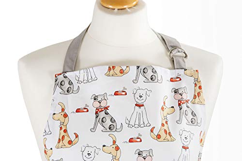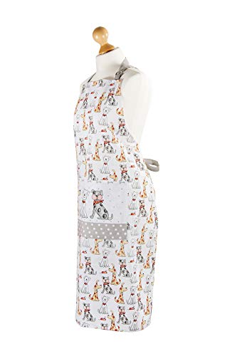 KOCHSCHÜRZE DAMEN Qualitative, multifunktionale Kochschürze aus 100% Baumwolle, 250 g, Seidensiebdruck. Kann bei 40° C gewaschen werden und ist geeignet für den Trockner. HUND DESIGN FÜR HUNDELIEBHABER Niedliches Hundedesign mit Vordertasche und verstellbarem Nackengurt mit Metallverschlüssen - perfektes Geschenk für alle Hundeliebhaber. SCHÜRZE FRAU Lange Hüftbänder (jeweils 96 cm) können vorne oder hinten zusammengebunden werden. BAUMWOLLE - MASCHINENWÄSCHE Qualitativ und strapazierfähig. Maße der Schürze: L 96 cm x W 70 cm, geeignet für alle Größen. GESCHENKIDEE Weitere Artikel in dem Design verfügbar, inkl. Geschirrtücher, Ofenhandschuhe und Becher aus Neuem Knochenporzellan, exklusiv nut von Spotted Dog Gift Company