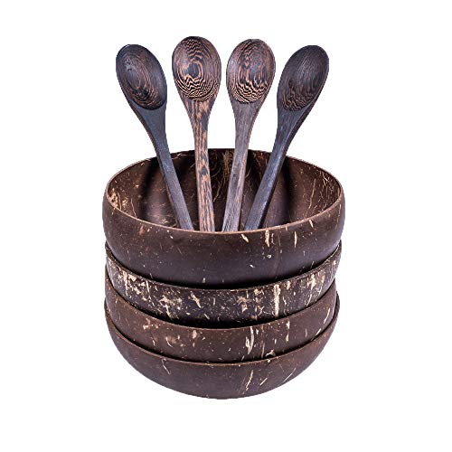 ???? Das Küchenzubehör für Naturfreunde: Je 4 Schalen und Löffel aus echter Kokosnuss machen Deine Küche zum Paradies. Vegan, plastikfrei und biologisch angebaut – Trage Deinen Teil zum Umweltschutz bei!. ???? Jedes Stück ein Unikat: Wir basteln unsere Produkte aus echten Kokosnüssen, deshalb ist jeder Löffel und jede Schale einzigartig. Pasta, Salat, Obst und Gemüse in der Schüssel sind das perfekte Motiv für Instagram!. ???? Unterstütze nachhaltige Jobs: Unser Küchenset ist handgemacht. Per Hand gepflückt, geformt und verarbeitet. Jeder Kauf unterstützt Kleinunternehmer auf der ganzen Welt. Und wenn Du sie nicht mehr willst: schmeiß sie einfach auf den Kompost. Es fällt kein Müll an.. ???? Halten ewig: Damit noch weniger Müll anfällt, machen wir das Set extra stabil. Dafür sorgt die Politur mit nativem Kokosnussöl. Das Material ist super leicht und trotzdem widerstandsfähig. Reinigen kannst Du sie in ein paar Sekunden per Hand!. ? Kostenloses eBook: Zum Kauf schenken wir Dir ein eBook mit unseren liebsten Rezepten. Schnell, gesund, lecker – mache Dir und der Umwelt jetzt eine Freude!
