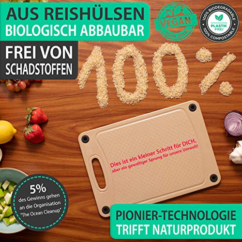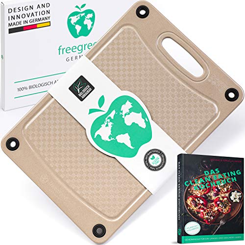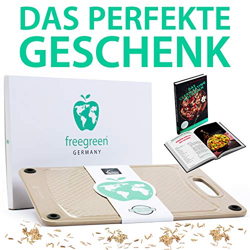 ????????? ???????????????????????????????????? '???????????? ???????????????????? ???????????????????????? ????????????????????????????????' – Zu deiner Bestellung erhältst Du völlig kostenlos unser brandneues Kochbuch dazu. In diesem Kochbuch lüften wir für Dich alle Geheimnisse für ein langes und gesundes Leben und wie wir einen wertvollen Beitrag für die Umwelt leisten!. ????????? ???????????????????????????????????????? ???????????????????????????????? & ???????????????????????????????????????????????????? – Das freegreen Schneidbrett mit Saftrille wird zu 100% aus nachwachsenden Rohstoffen, den Reishülsen und Pflanzenstärke, ohne Plastikzusatzstoffe hergestellt und kann somit einfach kompostiert oder in der Biotonne entsorgt werden!. ????????? ???????????????????????????????????????? ????Ü???? ???????????????? ???????????????????????????????????????????????????? ???????????????? – Unser Küchenbrett ist beidseitig verwendbar, antibakteriell, spülmaschinengeeignet, frei von Giftstoffen und aus 100%igen Naturstoffen gefertigt und enthält somit KEINE Lacke & Farbstoffe und ist Melamin-, Formaldehyd- sowie BPA-frei!. ????????? ???????????????????????????????????????????????????????? ???????????? ????????????,????% ???????????????????????????????????????????? – Das strapazierfähige und robuste Schneidbrett lässt Deine Messer anders als bei Bambus-, Holz-, Stein-, Plastik- oder Glasschneidebrettern nicht abstumpfen und ist absolut bruchsicher, wasserabweisend & temperaturbeständig [120°]!. ????????? ???????????????????? ???????????????????????????????????????? ???????????????????????????????????????????? ????Ü???? ???????????????? – Da wir zu 100,0% in unsere Qualität vertrauen, möchten wir Dir eine absolut risikolose Bestellung ermöglichen: Solltest Du mit Deinem Kauf nicht voll und ganz zufrieden sein, erhältst Du Dein Geld zurück - bis zu 5 Jahre nach Kauf!