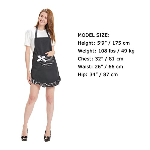 Material: 95% Baumwolle and 5% Polyester. Größe: 60cm Länge, 75cm Breite (nicht einschließlich des Bandes und der Rüschen). 1 große Tasche in der Mitte der Schürze für einfaches Festhalten von Handy, Rezeptkarten usw.. Krawatten an der Taille und ärmelloses Design ist bequem zu tragen.. Waschanleitung: Maschinenwäsche unter 40 Grad Celsius
