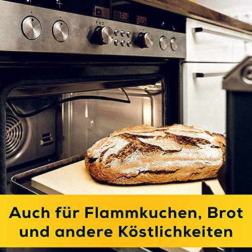 PIZZA WIE BEIM ITALIENER: Mit dem Pizzastein Set verwandelst Du deinen Backofen in eine kleine italienische Pizzeria und erfreust dich an der perfekten Mischung aus locker, luftigem Belag und knusprigem Boden.. PIZZASTEIN FÜR GRILL UND OFEN: Unser Pizza Stein (rechteckig) hält Temperaturen bis 900 °C stand und ist mit seiner Größe von 38 x 30 cm für nahezu jeden Backofen, Gasgrill und Holzkohlegrill geeignet.. DU WIRST ES LIEBEN: Die Pizzaschaufel aus Bambus Holz erleichtert das Ein- und Ausschieben der Pizza in den Ofen, verhindert Verbrennungen und erlaubt ein einfaches Servieren der frisch gebackenen Pizza.. GENUSSGARANTIE: Endlich ist die perfekte italienische Pizza kein Geheimnis mehr. Mit dem italienischen Pizza Rezeptbuch steht dem gemütlichen Pizzaabend mit Familie oder Freunden nichts mehr im Wege.. WIE AUS DEM STEINOFEN: Der Backstein Pizzastein für den Backofen simuliert die Eigenschaften eines Steinofens und ist nicht nur zum Backen von Pizza, sondern auch Flammkuchen, Brot und anderen Köstlichkeiten zu empfehlen.