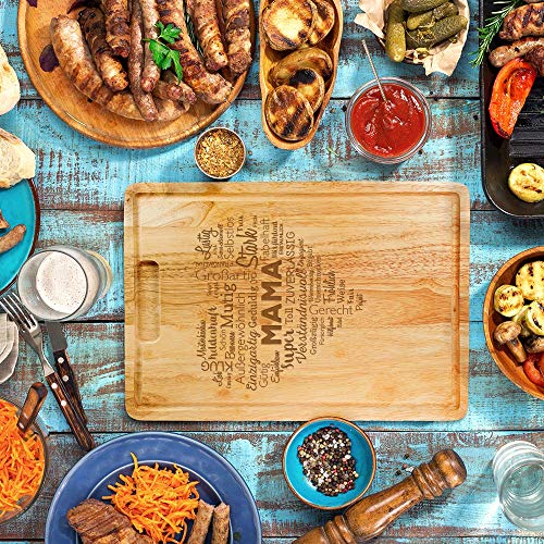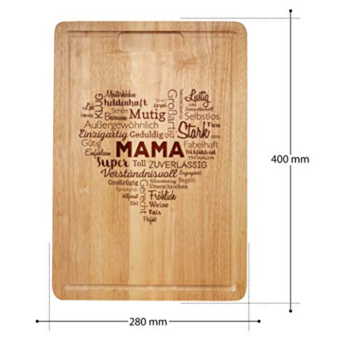 Casa Vivente Schneidebrett mit Gravur, Wortherz für Mama, Holzbrett mit Saftrille, Küchenutensilien, Muttertagsgeschenk