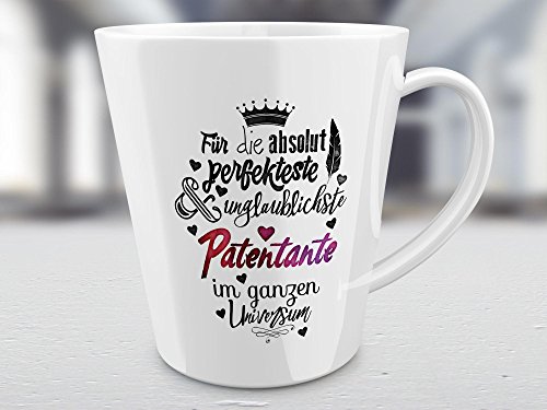 FunTasstic Tasse Für die absolut perfekteste Patentante - konische Kaffeepott 300 ml 100% handmade in Deutschland - zum Tee, Kaffee, als Geschenkidee mit Spruch, witzig, Küche Deko