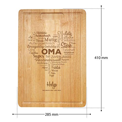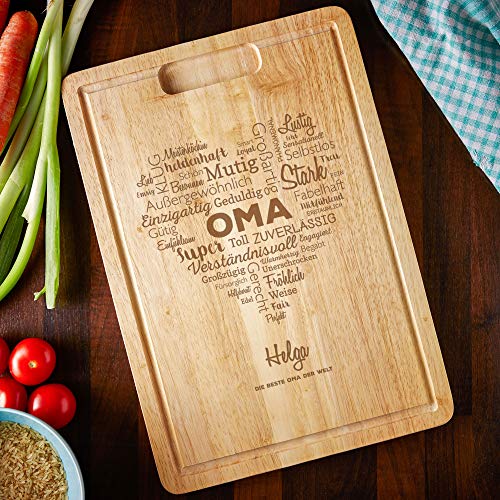 Casa Vivente Schneidebrett mit Gravur, Wortherz für Oma, Personalisiert mit Namen, Holzbrett mit Saftrille, Küchenutensilien, Geburtstagsgeschenk