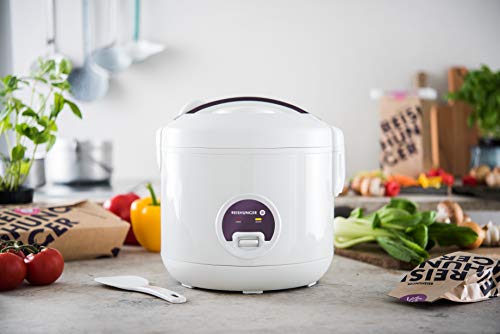 ???? PERFEKT GEGARTER REIS – Unser Reishunger Reiskocher ist bestens geeignet für weißen Reis und Vollkorn Reis – wie z. B. Sushi Reis, Duft Reis, Jasmin Reis und Basmati Reis. ?? PRAKTISCHE WARMHALTEFUNKTION – Der Reiskocher schaltet sich automatisch in den Warmhaltemodus, sobald der Reis gar ist und sorgt so für bis zu 8 Stunden lecker frischen Reis. ???? LEISTUNGSSTARKER REISKOCHER, DAMPFGARER, MULTIKOCHER – Gart den Reis gleichmäßig und schnell für bis zu 6 Personen / Fasst 1,2 Liter / 500W / 220V / Maße: 24,5 x 24,5 x 25cm / Gewicht: 2,3kg / Inkl. Keramikbeschichtetem Innentopf, Reiskocher-Löffel, Messbecher und Dämpfeinsatz – so gelingt auch Gemüse im Handumdrehen. ?? KEIN ANBRENNEN – Reis brennt dank keramikbeschichtetem Innentopf mit Wabenmuster nicht an. Ersatz- oder Zusatztöpfe können problemlos mitbestellt werden. ?? EINFACHE BEDIENUNG – Der Reishunger Reiskocher im schicken Design ist der perfekte Einsteiger-Reiskocher und leicht zu reinigen. Optimal als Geschenk für Reis Fans geeignet