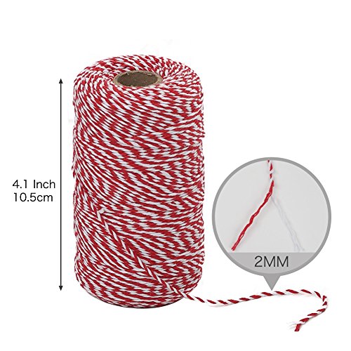 Maße: Länge: 200 m; Durchmesser: 2 mm. Material: Dieses Garn in Rot und Weiß besteht aus 100% lebensmittelunbedenklicher Baumwolle, sicher und umweltfreundlich. Vielseitig anwendbar: Das Garn eignet sich hervorragend zum Backen, für Fleischwaren und zum Einpacken von Weihnachtsgeschenken. Das Garn eignet sich auch wunderbar für Handarbeiten und Basteleien, für Blumengestecke, Buchbinden und Schulprojekte. Garantie: Für das Garn bieten wir Ihnen eine 100 prozentige Geld-zurück-Garantie