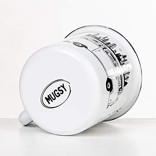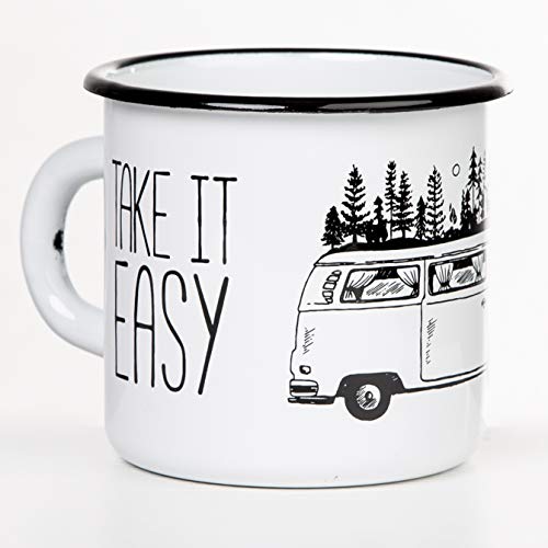 MUGSY Keep it Simple - Take it Easy TASSENWERK | Emaille Tasse mit Campervan Motiv im Outdoor Design | Emaille Becher bruchfest und leicht für Camping und Trekking | Retro Kaffebecher 330 ml