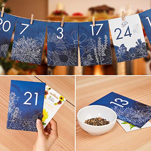 ???? Der BLUMEN SAMEN ADVENTKALENDER begleitet dich durch den Advent und stimmt auf eine besinnliche Zeit ein. Pflanzensamen sind schöne, nachhaltige Geschenke und ökologische Geschenke für den Garten!. ???? Er enthält 24 SAATGUT TÜTCHEN verpackt in kleine Papiertüten mit erlesenen, malerischen, insektenfreundlichen Bienen Blumen Samen. Adventskalender Samen perfekt für Frauen, Herren und auch Kids!. ???? DIY ADVENTSKALENDER NACHHALTIG mit SAATGUT SET: Neben Pflanzen Samen gehören zum Kalender eine Schnur aus natürlichen Jute-Fasern und Wäscheklammern aus Holz zum dekorativen Befestigen der Tütchen. ???? EINFACHE ANZUCHT – ob auf Fensterbrett, Balkon oder im Garten! Auf jeder Pflanzensamen Packung befinden sich ausführliche Informationen zu Aussaat und Pflege sowie den Besonderheiten der Sorten. ???? SAMENFESTES SAATGUT: Neue und alte Sorten, ohne Gentechnik. Schöner Bastel Adventskalender Blumensamen aus Deutschland. Liebevoll per Hand in einer Werkstatt für Menschen mit Behinderung verpackt!