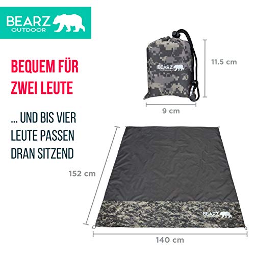 UNIVERSALER STIL – Die ultraleicht Decke mit ihren vielen Anwendungen ist perfekt für Ihre Abenteuer. Was sind die möglichen Anwendungen? Zum Beispiel: Stranddecke, Wasserdichte Decke für einen Pickinck oder Regenplane für Camping. Kann bei Unwetter als Notschutzdach oder Notunterlage genutzt werden.. KOMPAKT, LEICHT und WIEDERSTANDSFÄHIG – Ideale outdoor Austattung, Reisezubehör und Strand equipment. Es ist möglich diese Decke so klein zu falten, dass sie in Ihre Hand passt. Sie können sie mit in Ihrem Rucksack or Ihrer Handtasche mitnehemn oder einfach in Ihrem Auto dabei haben. Mann weiss nie wann sie sich schicken kann und wenn sie auf einem Musikfestival sind oder irgendwo zelten wollen, kann die Decke nützlich sein.. WASSERDICHT, REISSFEST – Der einzigartige Stoff aus dem die Decke gemacht wird ist wasserdicht und dauerhaft was sich für alle Ihre Abenteuer eignen kann. Brauchen Sie eine Picknickdecke, eine Trekkingplane oder velleicht eine unterlage die dem abwetzen, vom Sand an der Strand, wiederstehen kann? Unsere mehrzweckige Abdeckung wurde gerade für euch gemacht.. IDEALE GRÖSSE von 152x140cm und kluges Design – die wasserresistante Decke ist leicht faltbar und sehr nutzbar. In den Ecken der Decke befinden sich Tachen für Steine mit den Sie sie belasten können. An den Ecktaschen befinden sich auch Schlingen für Zeltpflöcke. Das Design der Plane erlaubt zwei Personen sich bequem auf sie zu liegen und bis zu 4 Personen können sich draufsetzen. Ideales Geschenk für Sie or Ihre Freunde.. PASSENDES ZUBEHÖR - Die Decke kommt mit einem Tragebeutel und Karabiner in passender Farbe. Wählen Sie Ihre lieblingsfarbe aus Blau, Grün, Rot, Rosa, Gelb oder digitalem Tarnmuster. Wollen Sie in der Natur einblenden oder auf einem Festival auffalen? Die Wahl gehörh Ihnen. Gehen sie nach Draußen vorbereitet und im Stil.