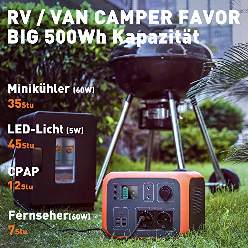 MEGA-KAPAZITÄT: Eine 500-Wh-Lithiumbatterie kann alle Ihre Anforderungen für Camping im Freien, Stromausfälle und andere Notfallsituationen erfüllen. Endlose Kraft für Autofahrten, Camping mit Wohnmobilen und Jagd.. PURE SINE WAVE: Verfügt über zwei 110-V-Wechselstromsteckdosen mit reiner Sinuswelle, die eine stabile Stromversorgung für Geräte mit hoher Reichweite wie Laptop und Projektor bieten. 2 DC-Anschlüsse und ein Car-Port (max. 120 W) können 12 V für Ihr Autozubehör wie Auto-Vakuum und Autopumpe liefern. 5 USB-Anschlüsse, darunter ein 45-W-PD-Typ-C-Anschluss, erfüllen alle Anforderungen zum Laden von Elektronik. SOLAR-BEREIT: Kann problemlos mit einem Solarpanel (separat erhältlich) aufgeladen werden, wenn Sie sich im Freien, im Carport und an einer Steckdose befinden. Enthält einen vorinstallierten Maximum Power Point Tracker (MPPT), der zu bis zu 40% kürzeren Ladezeiten führt, insbesondere bei Solarmodulen.. DRAHTLOSES LADEN: Brandneue Ladeerlebnisse mit dem vorinstallierten kabellosen Ladepad. Ladegeschwindigkeit von bis zu 10 W für Telefone, Uhren oder Geräte, die Qi-kompatibel sind.. Ultimativer Service: ERHALTEN SIE 100% ZUFRIEDENHEIT UND 24 MONATE ERWEITERTE GARANTIE. Wenn Sie Fragen haben, wenden Sie sich bitte an support@autotacklife.com. Wir bieten Ihnen aufrichtig 24 Stunden freundlichen Kundenservice. WAS IST INBEGRIFFEN: 500-Wh-Kraftwerk, Ladegerät, MC4-Kabel, Autoladekabel, USB-C-Kabel, Zigarettenanzünderadapter.