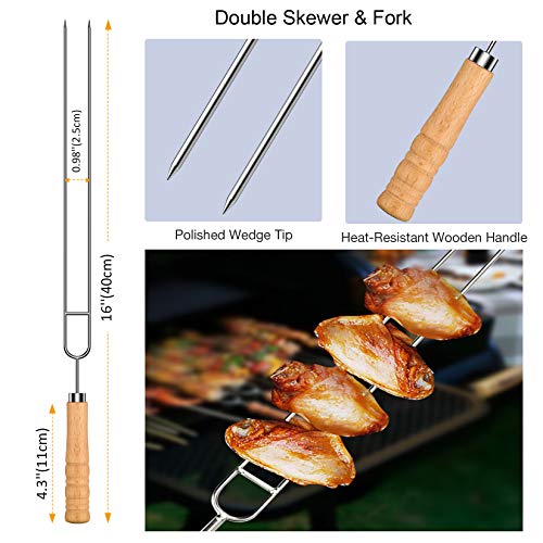 ?Reichhaltige Sorten? Morole 33-Stück Grill Spieße Set enthält: 8pcs x 40 cm Doppelspieße Grillgabel mit Holzgriff, 8pcs x 40 cm flache Lang Grillspiesse, 8pcs x 35 cm Quadratisch Lang Spieß, 8pcs Maishalter und 1 pc wasserdichte Aufbewahrungstasche.. ?Premium-Edelstahl? Die Metallspieße bestehen aus verdicktem, hochwertigem Edelstahl, der lebensmittelecht, rostfrei und hitzebeständig ist und es Ihnen ermöglicht, mehr Gewicht auf jede Saite zu legen, ohne sich zu verbiegen. Das robuste Material und alle polierten Kanten gewährleisten eine sichere Anwendung über Jahre hinweg.. ?Perfekte Länge? Die Spieß Stöcke aus Edelstahl von Morole eignen sich für Grillgrößen verschiedener Größen. Die Spieße sind lang genug, um viel Essen aufzunehmen und die Griffe außerhalb der Grillabdeckung zu halten, sodass Sie die Spieße umdrehen können, ohne sich der Flamme nähern zu müssen.. ?Leicht zu reinigen?Die Oberfläche der Edelstahlspieße ist glatt, sodass gegrillte Speisereste nicht auf der Kabob-Spießklinge haften bleiben. Mit einem milden Reinigungsmittel waschen oder in die Spülmaschine werfen, Wasser abwischen und sie werden wie neu herauskommen und können als nächstes wiederverwendet werden Grillparty.. ?Einfache Aufbewahrung? Stockbrot Stöcke werden zum Schutz mit Spitzenabdeckungen geliefert. Ein praktischer Aufbewahrungsbeutel sorgt dafür, dass diese Spieße für eine einfache Aufbewahrung gut organisiert sind. Es ist ein ideales Geschenk für alle, die gerne grillen.
