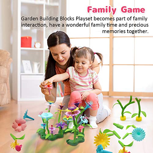 2020 Upgrade Blumengarten Spielzeug - Das gartenspielzeug für kinder umfasst 8 einfache basen und 4 vielseitige basen, 68 stiel-und blattstücke, 34 blütenkerne und 34 bunte blütenteile, 2 blumentöpfe. Neue deformierte aststiele und eine aufbewahrungsbox hinzugefügt. Mehrere DIY Bouquet Sets für kinder zu bauen. Spielzeug ideal ab 2 3 4 5 6 jahre mädchen geschenk.. Pädagogisches Spielzeug - Diese gartenarbeit ist interessant und lehrreich. Blumengarten Spielzeug wurde entwickelt, um die vielfältigen fähigkeiten Ihres kindes zu entwickeln. Farb-und formerkennung, feinmotorik, denk-und problemlösungsfähigkeit und designfähigkeit werden während des spielens entwickelt.. Grünes Spielzeug - Hergestellt aus verbessertem ungiftigem und haltbarem ABS-Kunststoff mit BPA-FREIEN ECO-freundlichen materialien, die ein auseinanderbrechen beim spielen perfekt verhindern. Glatte oberfläche, sicher für kinder zum spielen.. Endlose Kombinationen - Alle teile sind austauschbar und ermöglichen endlose kombinationen und designs. Für kleine gärtner leicht zu montieren oder zu demontieren. Eine auswahl an lebhaften und farbenfrohen lilien, petunien und gänseblümchen hilft ihnen dabei, das stapeln zu verstehen.. Familienspiel - Blume Bausteine wird teil der familieninteraktion. Haben sie eine wunderbare zeit mit der familie und wertvolle erinnerungen zusammen.