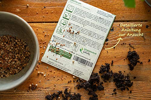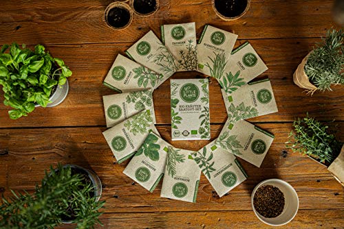 ????BIO-Saatgut Set von LITTLE PLANTS. Kräutersamen für die Aufzucht und den Anbau von leckeren und natürlich robusten Kräuter-Pflanzen. Für Küche, Balkon, Topf, Kübel, Kräuterbeet, Hochbeet oder Garten. Prall gefüllt mit Saatgut für 12 unterschiedliche, leckere Kräuter und Gewürze.. ????Folgende BIO-KRÄUTER und GEWÜRZ-SAMEN sind in unserem Set enthalten: Basilikum, Schnittlauch, Rosmarin, Gartenkresse, Koriander, Liebstöckel, Salbei, Bohnenkraut, Petersilie, Majoran, Dill und Thymian.. ????ZUR ERHALTUNG DER ARTENVIELFALT! – BIO-Zertifiziertes Saatgut in hoher Qualität, SAMENFEST zur unbegrenzten Wiedervermehrung, ungebeizt, frei von Pestiziden, nicht gen-manipuliert (keine Hybriden), 100 % NATUR, sehr ertragreich durch HOHE KEIMRATE!. ????ZUR ERHALTUNG UNSERER UMWELT! - Nachhaltige und hochwertige Verpackungen aus dem natürlichen Rohstoff GRASPAPIER mit außergewöhnlich schöner Optik und Haptik, FSC®?Zertifiziert, klimaneutral bedruckt. Mit Liebe in Deutschland abgefüllt und in Handarbeit verpackt.. ????EINFACHE ANZUCHT – Die Anzucht ist kinderleicht durch die detaillierte Anbauanleitung auf jedem Beutel und einem praktischen Aussaatkalender. Auch wunderbar für Gartenneulinge geeignet und ideal als Geschenk für Freunde und Familie!