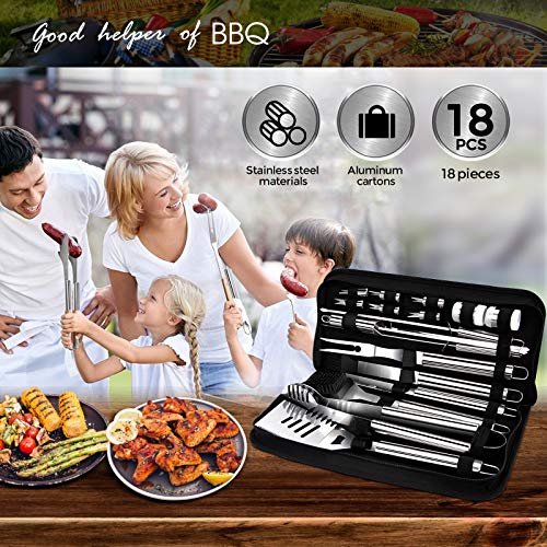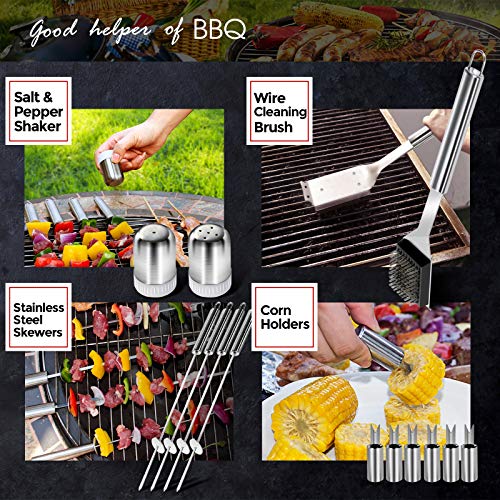 18-teiliges Grillwerkzeug-Set einschließlich Maisklipp*6, Grillschaufel*1, Grillzange* 1, Grillgabel*1, Grill Stäbchen*4, Gewürzglas*2,Grillschaber*1, Pinsel *1, Reinigungsbürste*1. Es ist aus hochwertigem Edelstahl gefertigt und wird hochwertig poliert. Die Grillzubehöre aus Edelstahl sind robust, werden nicht verbogen, gebrochen oder gerostet sein und sind leicht zu reinigen nach dem Gebrauch.. Das Grillwerkzeug Satz wird mit Tragentasche. Die Werkzeuge können daher sauber und einfach aufbewahrt werden.. Die Struktur ist stark. Der Griff schützt Ihre Hände vor hohen Temperaturen.. Wenn das Produkt beschädigt ist oder eine schlechte Qualität aufweist oder sogar wissen Sie nicht, wie es verwendet wird, wenden Sie sich bitte direkt an uns. Wir werden dabei helfen, eine Lösung anzubieten. Das Kundenerlebnis steht an der ersten Stelle. Wir achten nicht nur auf die Produktqualität, sondern auch auf den Kundendienst.