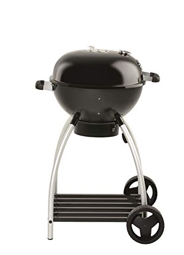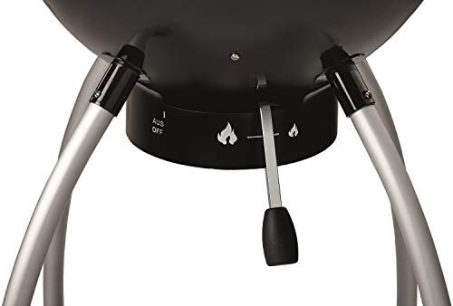 Extra große Grillfläche und Grillraum: Ø 50 cm = 1.885 cm² - hoher Deckel für großen Garraum und ausreichend Platz für Aufsätze - 80 cm Arbeitshöhe für ein angenehmes Grillen. Präzise Luftzufuhr: Die Lüftung bietet eine einfache Steuerung der Temperatur mit einem Hebel. Praktisches Deckelscharnier: Kein lästiges Ablegen des Deckels mehr - das Scharnier und der robuste Deckelgriff garantieren schnelles Öffnen und Schließen des Deckels mit nur einer Hand - inkl. großem Deckelthermometer mit Anzeige in °C und °F. Wenderost und müheloser Transport: Der patentierte Wende-Kohlerost kann zum direkten und indirekten Grillen eingesetzt werden - stabile Räder garantieren einen sicheren Transport. Stabile Ablage: Die Verstrebungen unter dem Kugelgrill bieten einen großzügigen Stauraum für Grillzubehör