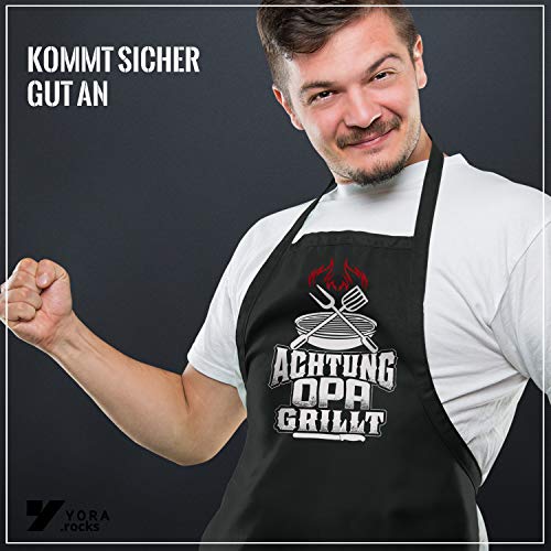 ???? LUSTIGE GRILLSCHÜRZE FÜR MÄNNER: Die BBQ Schürze ist der absolute Blickfänger auf jeder Grillparty und das perfekte Vatertagsgeschenk / Geburtstagsgeschenk für den Opa / Papa / Vater.. ???? PASST JEDEM GRILLMEISTER: Die schwarze Grill Schürze (60cmx90cm) passt Dank der langen Bändel dem Schlanken, als auch dem Griller mit schönem Bierbauch. Die Männer Schürze schützt zuverlässig von der Brust bis zum Knie.. ???? WITZIGES GRILLZUBEHÖR GESCHENK FÜR MÄNNER: Egal ob zum Vatertag oder als Geburtstagsgeschenk für den Opa. Die Grillzubehör Kochschürze sorgt schon beim Auspacken für fantastische Stimmung.. ????? MIT PERSONALISIERBARER EHRENURKUNDE: Der Maenner Grillschürzen wird eine hochwertige Urkunde beigelegt, die das Männergeschenk abrundet. Einfach den Namen eintragen und verschenken. Das lustige Herrentag Geschenk von Yora.rocks.. ???? PFLEGELEICHTES MÄNNERGESCHENK: Die Männer Schürze ist nach dem Grillen voller Fett und Bier? Kein Problem! Die Barbecue Grillschürze für den Mann ist hochwertig verarbeitet und kann in der Maschine gewaschen werden.