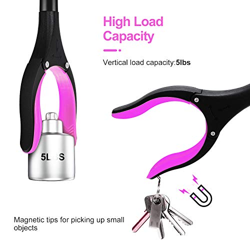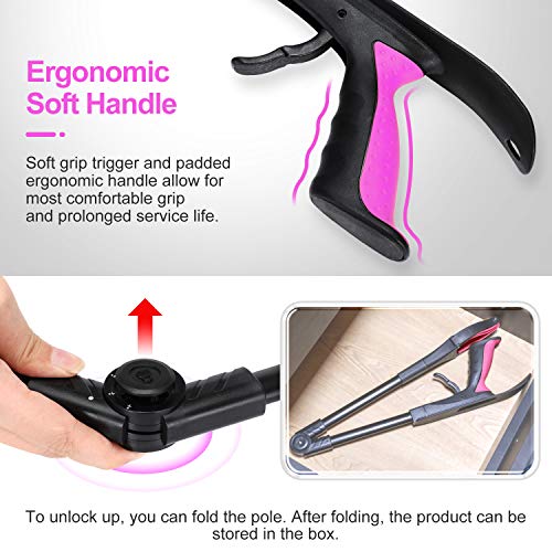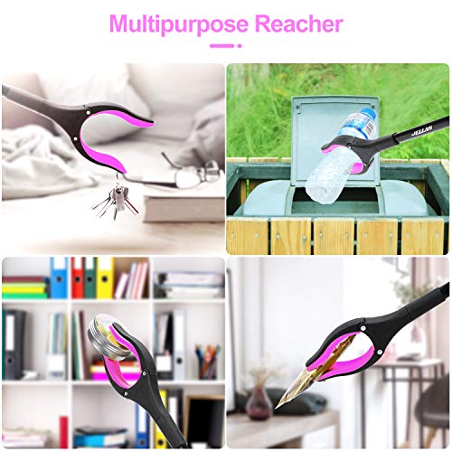 ? ?Einfaches Greifen? Mit dem JELLAS Greifer ist es einfach, Dinge an schwer zugänglichen Stellen aufzunehmen, besonders wenn Menschen Schwierigkeiten haben, sich zu bücken oder schmutzige Hände vermeiden wollen. Problemlos sammelt man mit dem Greifer Münzen, Umschläge, Müll, Glasscherben usw. ein. Ein ideales Geschenk für schwangere Frauen, ältere oder behinderte Menschen. Magnetspitzen auf der Oberseite erlauben das Aufnehmen kleiner Metallteile wie Schlüssel, Münzen, Nägel und Stifte.. ? ?Faltbarer abgewinkelter Arm & um 90 Grad drehbarer Kopf? Der JELLAS Greifer verfügt über einen um 0-180 Grad faltbaren abgewinkelten Arm, der speziell so konstruiert ist, dass Sie ihn auf jeden gewünschten Winkel einstellen können. Der Kopf des Greifers kann um bis zu 90 Grad gedreht werden, wodurch die Richtung eingestellt werden kann. Sie können größere Bereiche erreichen und sind horizontal und vertikal flexibler.. ? ?Schuhanzieher-Design? Über dem Griff befindet sich ein Schuhanzieher, der für Personen geeignet ist, die sich nicht bücken können, z. B. ältere Menschen, Kinder und behinderte Menschen. Der Schuhanzieher enthält auch einen eingebauten Aufhänger zur bequemen Aufbewahrung bei Nichtgebrauch. Bitte nicht auf den Schuhanzieher treten, um eine Beschädigung zu vermeiden.. ? ?Größere Tragfähigkeit und leichtes Material? Dank seiner hohen Tragfähigkeit kann das Greifer-Werkzeug bis zu 1 kg schwere Objekte greifen. Es ist leicht und solide und besitzt einen weichen Griff, um eine Ermüdung von Armen und Händen durch ständigen Gebrauch zu vermeiden. Geeignet für den Innen- und Außenbereich.. ? ?Ergonomischer Griff und Aufnahme mit großem Durchmesser? Der weiche und ergonomische Griff des Greifers sorgt für bequemen Halt. Er funktioniert problemlos durch einfachen Druck auf den Abzug. Die maximale Aufnahmeöffnung beträgt bis zu 100 mm und erlaubt einfaches Greifen einer Vielzahl von Gegenständen.