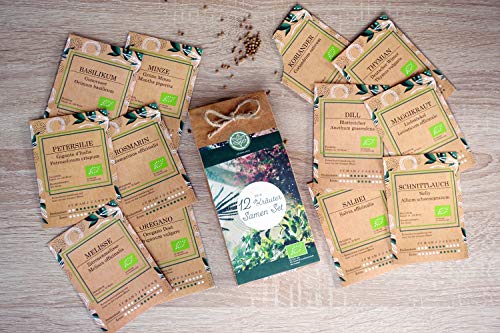 ???? Unser Samen Set enthält 12 Bio Samen für die Aufzucht und den Anbau von leckeren Bio Küchenkräutern und Gewürzkräutern. Egal ob im Topf auf der Fensterbank, Balkon oder im Kräuterbeet; die Anzucht klappt überall.. ???? In unserem Bio Kräuterset findest du 12 Küchenkräuter: Basilikum, Petersilie, Grüne Minze, Salbei, Dill, Rosmarin, Thymian, Oregano, Zitronenmelisse, Koriander, Schnittlauch, Maggikraut. Unser Kräuter Mix besteht aus den 12 beliebtesten Gewürzkräutern, Teekräutern und Küchenkräutern; einjährige sowie mehrjährige.. ???? Unser Bio zertifiziertes Saatgut zeichnet sich durch BESTE KEIMFÄHIGKEIT aus. Alle unsere BIO SAMEN sind ungebeizt, samenfest (keine Hybriden) und NICHT GENMANIPULIERT.. ???? Mit unserem Online Ratgeber gelingt dir die Anzucht garantiert; egal ob im Kräutergarten, auf der Fensterbank, im Hochbeet oder im Anzuchtset. Bei Schwierigkeiten oder Fragen kannst du einfach unseren Whatsapp Service nutzen.. ???? EINZIGARTIGE UND NACHHALTIGE GESCHENKIDEE! Unser Set ist besonders schön verpackt und perfekt zum Verschenken zu jedem Anlass geeignet, die perfekte Geschenkidee für Männer und Frauen