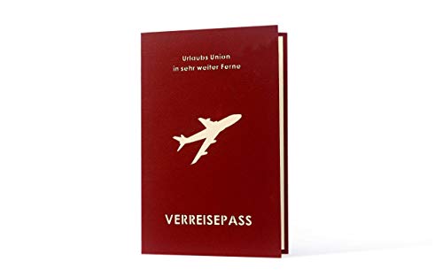 BESONDERES GESCHENK - Einfallsreiche, authentische und originelle Geschenk- und Geburtstagskarte im Stil eines Reisepasses mit Pop-up Koffer auf den Innenseiten - Diese in weinrot gehaltene Karte ist der perfekte Reisegutschein für Sie oder Ihn. Möchten Sie jemanden mit einem Urlaubsgutschein zum Valentinstag, Jahrestag oder zu einem anderen Anlass oder aber ganz einfach nur so überraschen? Planen Sie ein ganz besonderes Geburtstagsgeschenk? Mit dieser Geschenkkarte wird Ihnen die Überraschung m. VERSCHENKEN SIE EIN LÄCHELN - Eine ausgefallene Gruß- oder Geschenkkarte für fast jeden Anlass, die ebenfalls einen tolles dekoratives Element hergeben würde, oder ein Andenken an eine wunderschöne Zeit. Unsere Minikunstwerke werden von uns mit viel Liebe zum Detail gestaltet und mit noch mehr Geschick zu dieser fantastischen Überraschung zusammengesetzt.. VIELSEITIG EINSETZBAR - Die Karte eignet sich für viele Anlässe, denn wir designen all unsere Karten auf elegante und hochwertige Art und Weise. Sie wird mit passendem Umschlag und in schützender Zellophan-Hülle geliefert. Geschlossen misst die Karte 12 x 18 cm. Die Innenseite sind blanko und du hast hier genügend Platz für deine Botschaft. Danach einfach die Karte in den Umschlag stecken und das Geschenk ist fertig.. FAIR TRADE & QUALITÄT - Die Karten werden unter fairen Bedingungen in einem Familienbetrieb produziert. Mit Ihrem Kauf unterstützen Sie dieses Projekt. Die Einzelteile werden mit einem Laser ausgeschnitten und dann von Hand zusammen gesetzt.. LIEFERUNG & ZUFRIEDENHEIT: Wir liefern direkt aus dem Amazon Lager und können so den schnellsten Versand anbieten. Wir haben bereits über 20.000 zufriedene Kunden, überzeugen Sie sich selbst von unseren liebevollen Produkten. Noch Fragen? Melden dich gerne bei uns!