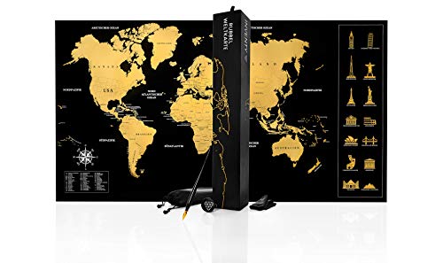 ? SO WUNDERSCHÖN WIE DEINE ERLEBNISSE: Mit dem einzigartigen Design ist die INVENTY Rubbelweltkarte das perfekte Reisetagebuch. Erwecke mit dem Farbverlauf deine schönsten Erinnerungen. Mit ihren schönen Farben liefert die Weltkarte zum Rubbeln auch als Dekoartikel optimalen Gesprächsstoff.. ? WASSERFARBEN DESIGN: Über ein Jahr tüftelt das Inventy Team an dem perfekten Design sowie einem optimalen Kratzerlebnis, indem wir für eine hochwertige Qualität der Rubbelkarte gesorgt haben. Denn wir haben es uns zur Mission gemacht, unseren Kunden nur das Beste zu bieten.. ? PERFEKTE GESCHENKIDEE: Brauchst du noch das passende Geschenk für Reisende? Dann bring unsere Scratch Map in das Leben deiner Freunde und Verwandten, mit denen du deine Abenteuer und Momente teilst.. ? INDIVIDUALITÄT WIRD GROß GESCHRIEBEN: Mit ihren zwei Farben bietet die Landkarte zum Rubbeln etwas für jeden. Ein warmer Goldton und ein kühler Silberton sind ein Garant für deine persönliche Entfaltung. Darunter verbergen sich wundervoll verlaufende Wasserfarben, die jeden erstaunen lassen.. ? DAS INVENTY VERSPRECHEN: Wir bei Inventy garantieren nur die höchste Qualität und den besten Service. Solltest du aus einem Grund nicht zufrieden mit unserer Welt Rubbelkarte sein, bekommst du ohne Wenn und Aber dein Geld zurück!